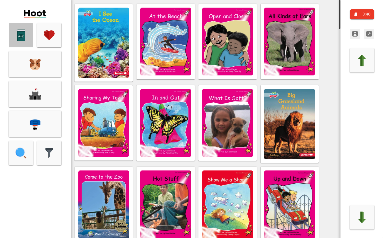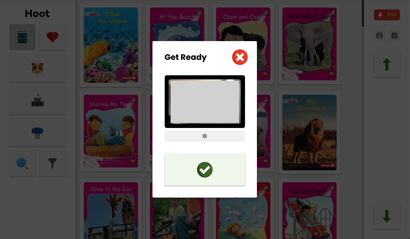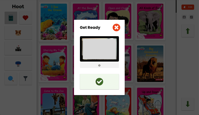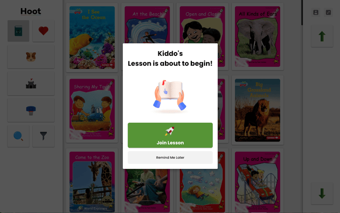 If you join before the teacher, you will see the Hoot Kids book that your student can flip through while they wait.